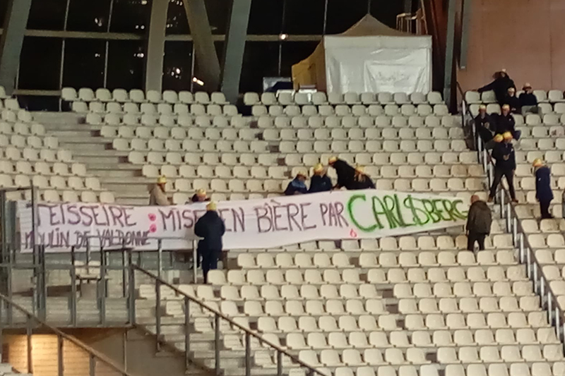 Après avoir distribué des tracts aux abords du stade pour présenter leur combat et leur cagnotte de grève (voir encadré), ceux-ci ont déployé en tribune Nord une banderole fustigeant la « mise en bière par Carlsberg ». Une initiative à laquelle se sont joints sans surprise les ultras du Red Kaos 1994. Fidèles à leur tradition de solidarité, les supporters grenoblois ont ainsi déroulé deux banderoles en tribune Ouest, à la 25e minute du match : « Non à la fermeture de l’usine Teisseire » et « Soutien aux 205 employés menacés ».
