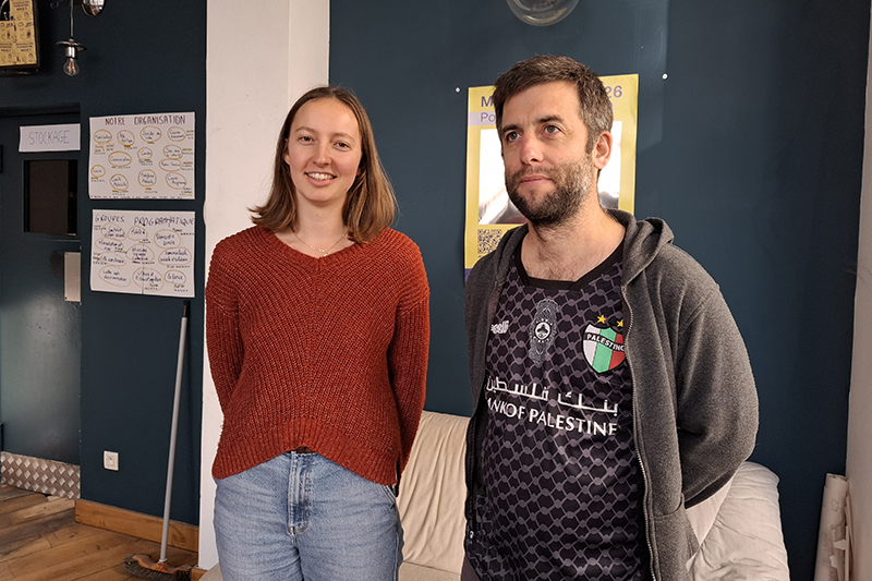 Léo­nie Cha­mus­sy et Fabien Giver­naud dans le local de cam­pagne du GAC.