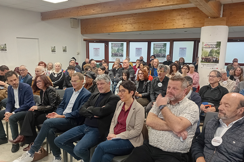 Après les interventions des représentants de la liste, plusieurs élus présents ont tenu à prendre la parole pour apporter leur soutien à « Fontaine nous rassemble ». Ainsi, le sénateur écologiste Guillaume Gontard a rendu hommage au passé de la ville, alors gérée par la gauche, lui qui, maire de Percy, a connu le centre de vacances de Fontaine créé en 1947. Il s’est également félicité du rassemblement opéré pour les municipales, avec un projet politique : « Nous avons des valeurs communes — je pense à l’État de droit — qui sont attaquées. Défendons-les unitairement. »