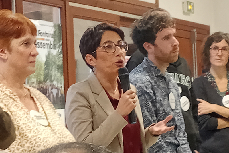 Amandine Demore, maire d’Échirolles, a ensuite témoigné, aux côtés de son premier adjoint Pierre Labrier, des changements apportés aux citoyens par une ville de gauche. L’élue communiste a cité en particulier la tranquillité publique qui serait bien mieux assurée à Fontaine, sur la base de ce que défend la liste de gauche. « Avec votre liste, les habitants de Fontaine trouveront la voie d’une ville où il fera bon vivre, pour tous », a‑t-elle assuré.