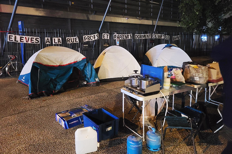 Grenoble. Une famille et ses soutiens sous des tentes devant le collège Vercors