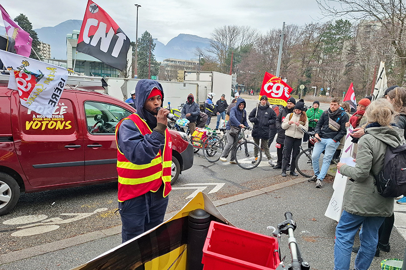 Preuve des liens étroits tissés entre ces luttes complémentaires, les manifestants ont accueilli dans leurs rangs des AESH, des enseignants ou encore des occupants du siège de la Métropole. Acclamé par la foule, Mohamed Fofana, secrétaire du syndicat CGT des livreurs à vélo, se félicite ainsi de leur mobilisation conjointe avec les travailleurs sociaux. « Nous sommes tous dans le même bateau », assène-t-il, enchaînant avec un plaidoyer « pour la réquisition des logements vacants ». Et appelant à la solidarité avec les quelque « 150 personnes qui dorment dehors, des femmes et des enfants dépourvus de tout accompagnement social ».
