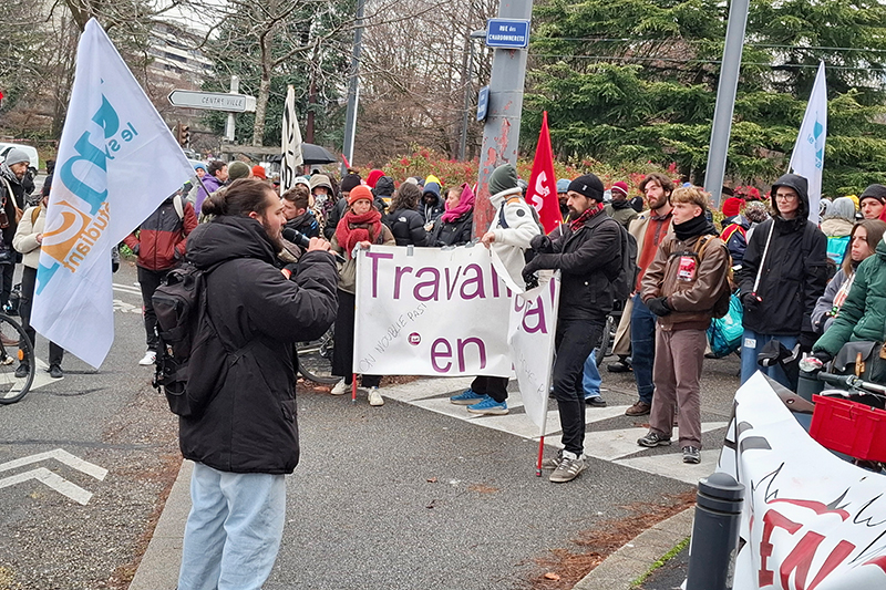 « Le programme est à la fois chargé et ambitieux mais c’est la réponse nécessaire aux attaques qu’on subit au quotidien. » Baptiste Anglade, éducateur spécialisé, résume au micro le sentiment animant la quasi-totalité des quelque 400 manifestants réunis ce mardi 16 décembre, aussi déterminés qu’ulcérés par leurs conditions de travail. Le syndicaliste CGT a pris la parole, à l’instar des représentants des autres syndicats organisateurs (Sud santé sociaux, Sud collectivités territoriales, CNT et UNEF), devant la Direction départementale de l’emploi, du travail et des solidarités (DDETS), avenue Marie-Reynoard, point de départ de la manifestation ouvrant cette séquence de trois jours de mobilisation.