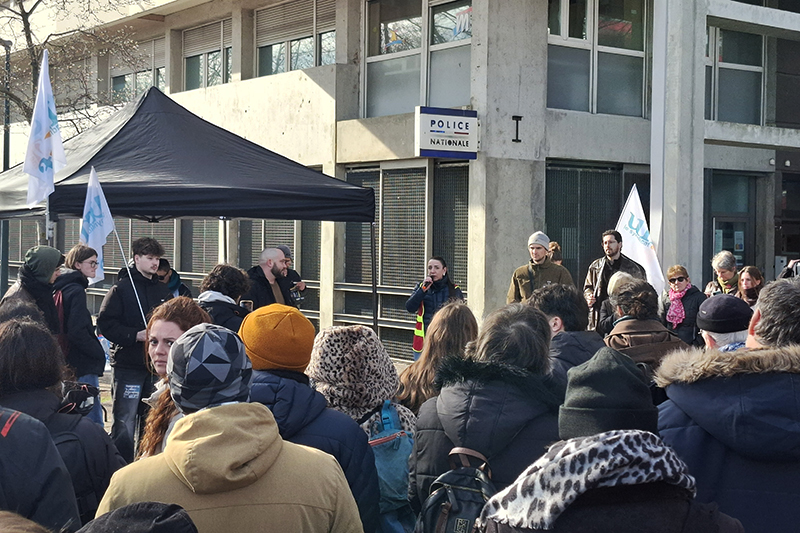 Face à cette convocation ubuesque, près de cinquante organisations (syndicats, associations, partis politiques) appelaient à un rassemblement sur les lieux, ce mercredi midi, pour apporter leur soutien à Baptiste Anglade. Syndicalistes CGT et Unef, étudiante à Ocellia, représentant de la Confédération paysanne, militants de gauche et d’extrême gauche… Les orateurs successifs ont tous évoqué la répression — policière et judiciaire — croissante à l’encontre des luttes sociales, syndicales, écologiques.