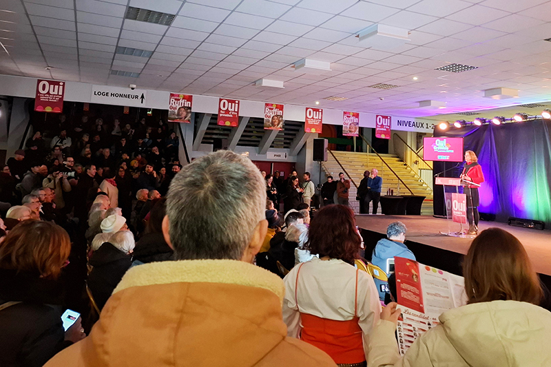 De nouvelles propositions seront ensuite dévoilées chaque semaine, jusqu’au premier tour. À un peu plus d’un mois de l’échéance, la pression monte. Mais Laurence Ruffin, acclamée par la salle, l’attend sereinement, plus que jamais préparée à livrer cette bataille. Et de filer une belle métaphore « en tant que nageuse » accomplie [NDLR : elle a été championne de France UNSS de natation synchronisée par équipe] : « J’ai hésité à sauter dans le grand bain mais j’ai finalement décidé d’y plonger tout entière. »