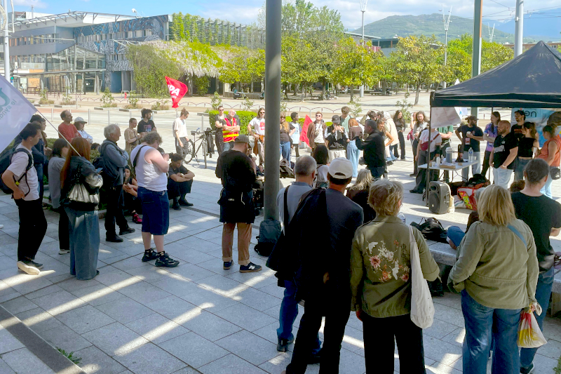 Quoiqu’il en soit, une quarantaine de syndicats, partis et mouvements ont marqué leur solidarité face à ce qui relève de la remise en cause des libertés syndicales. Une centaine de personnes se sont rassemblées ce 16 avril devant l’hôtel de ville d’Echirolles, où était initialement programmée l’entrevue avec la déléguée du procureur.
