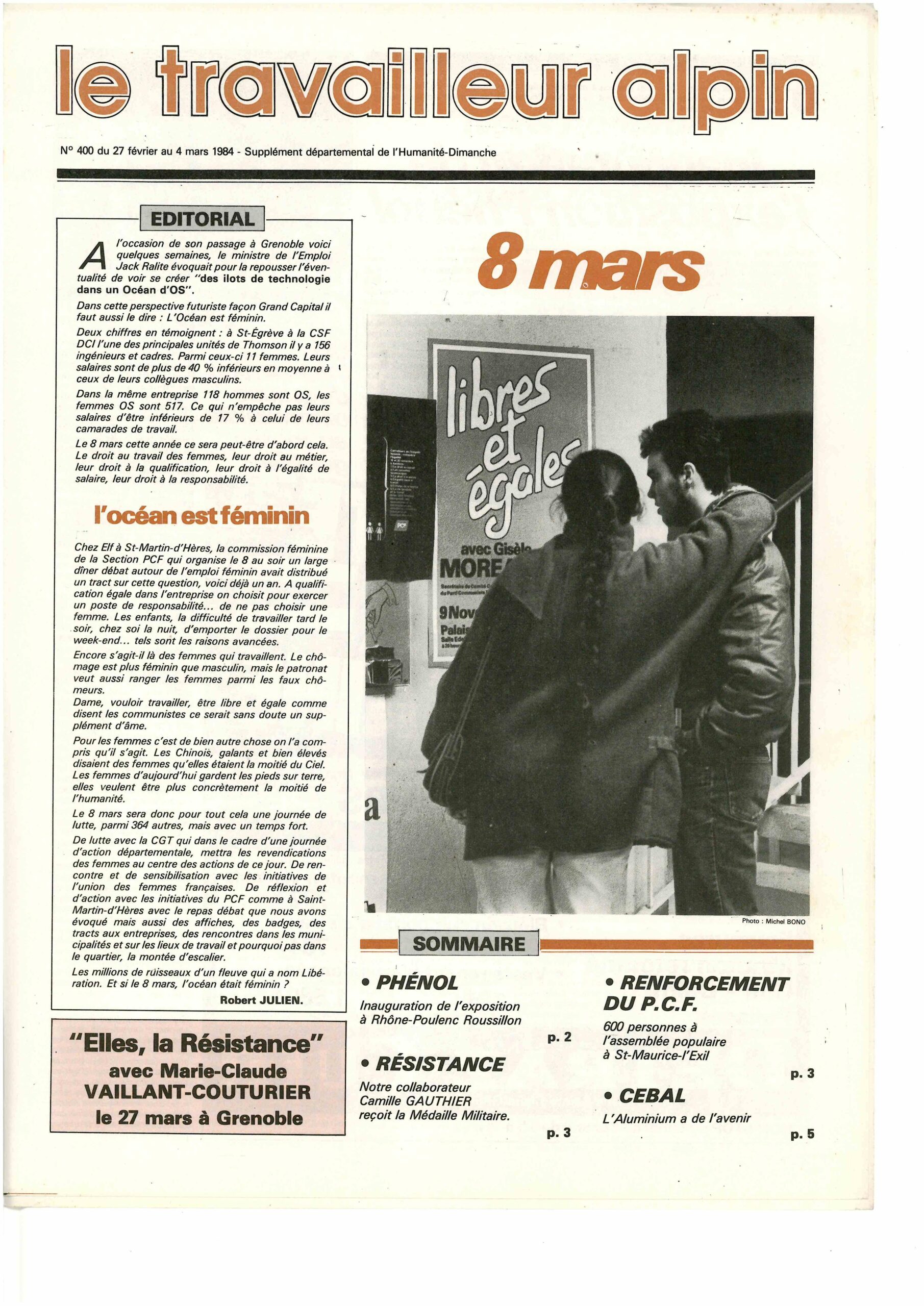 Le Tra­vailleur alpin n°400 27 février 1984